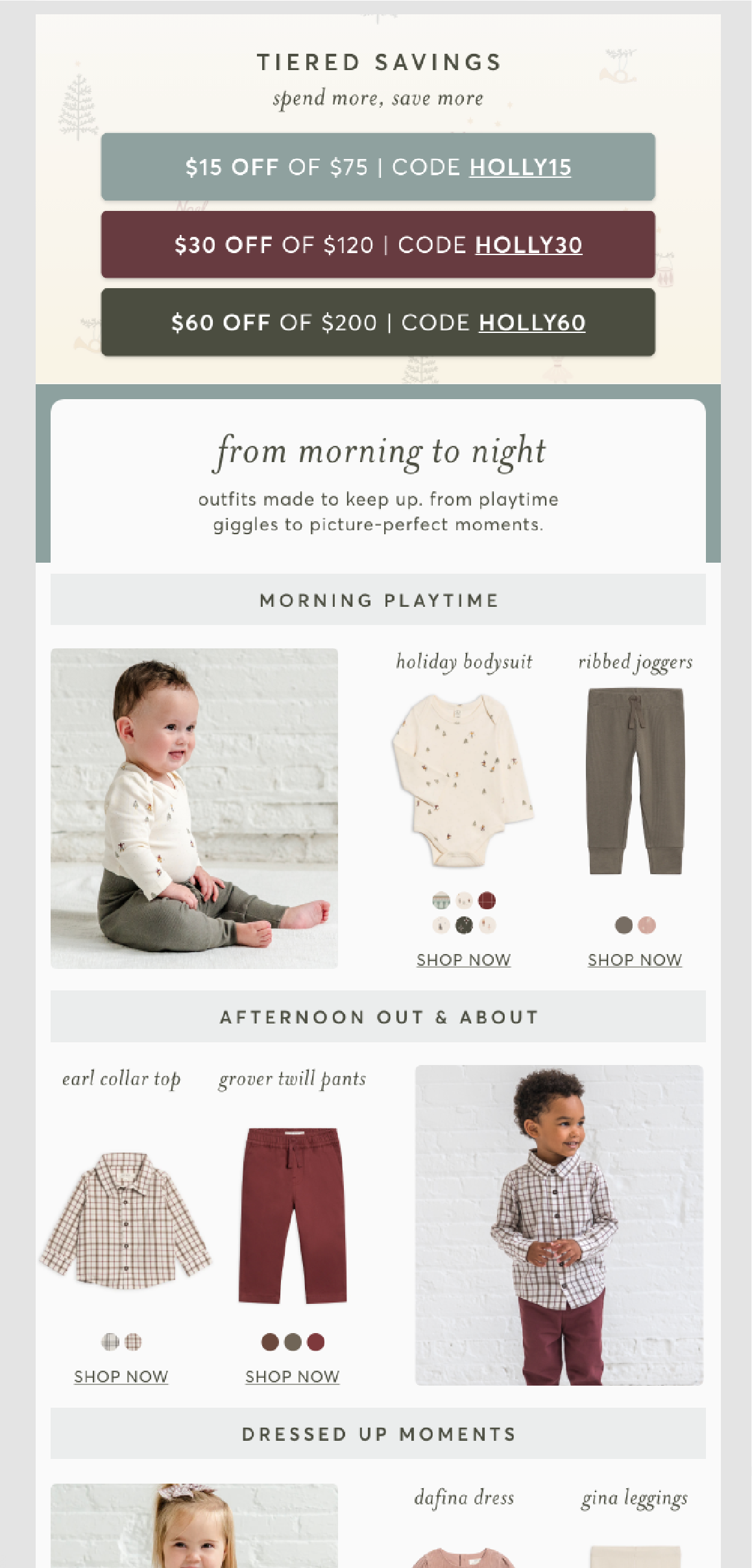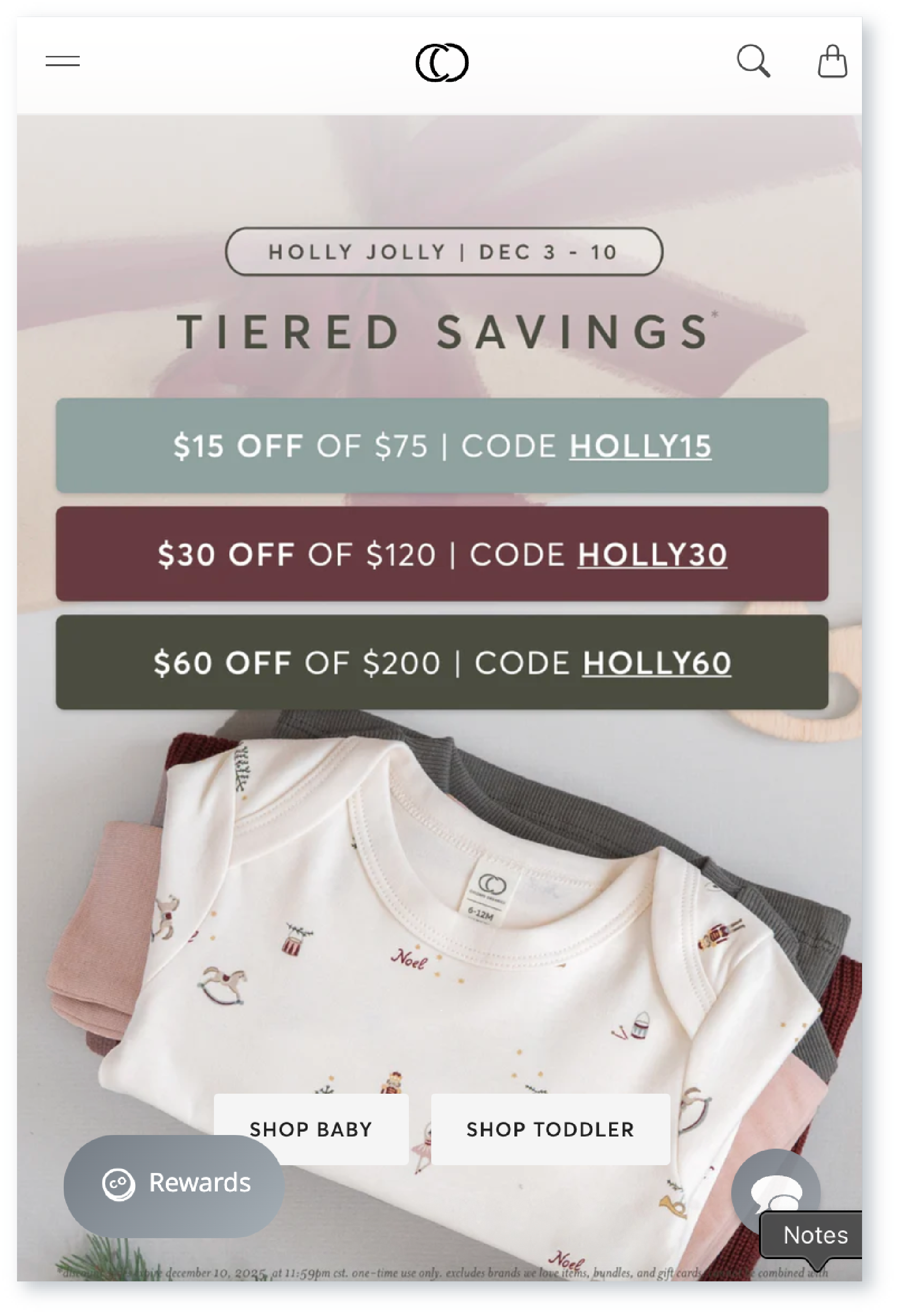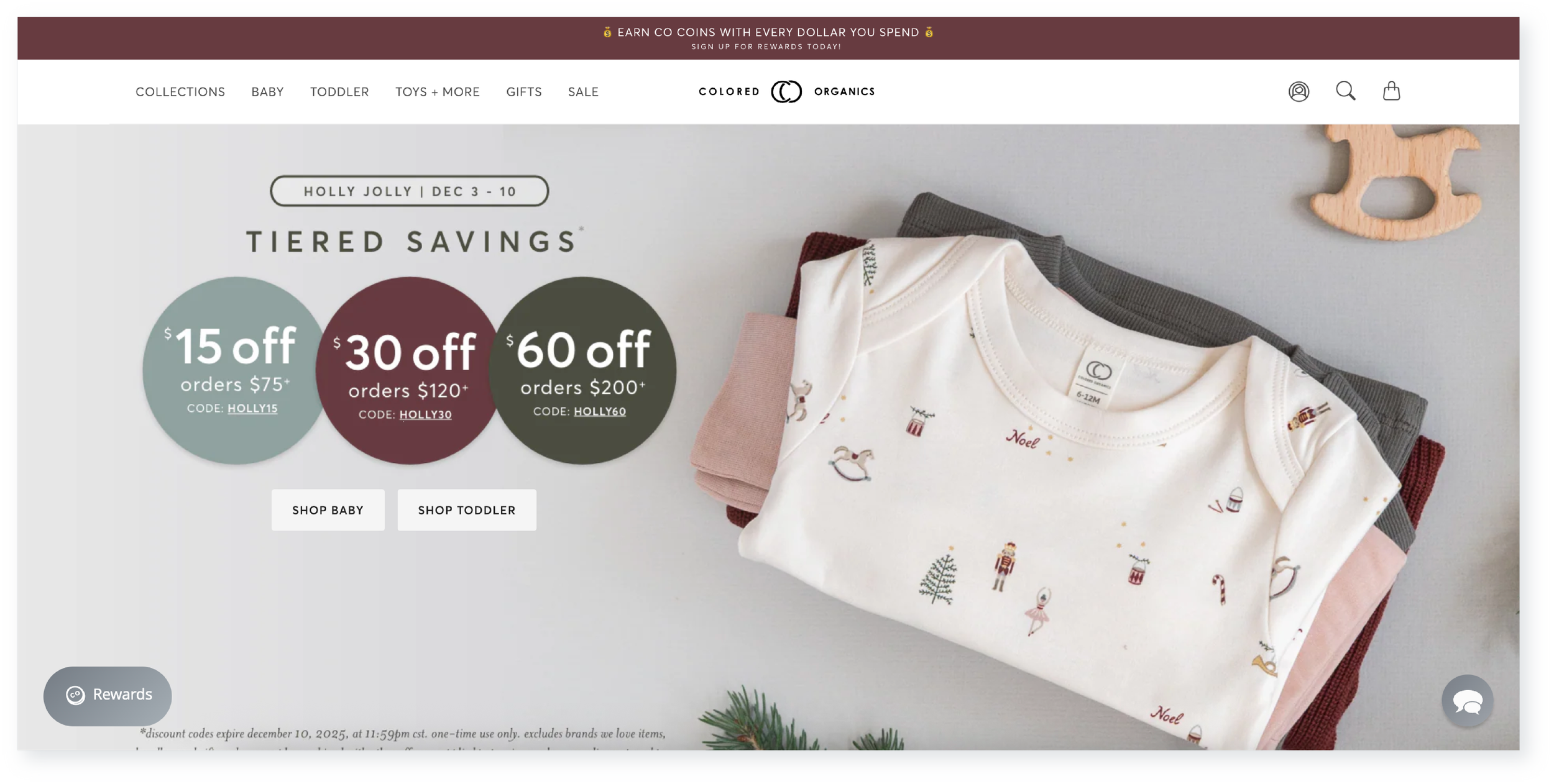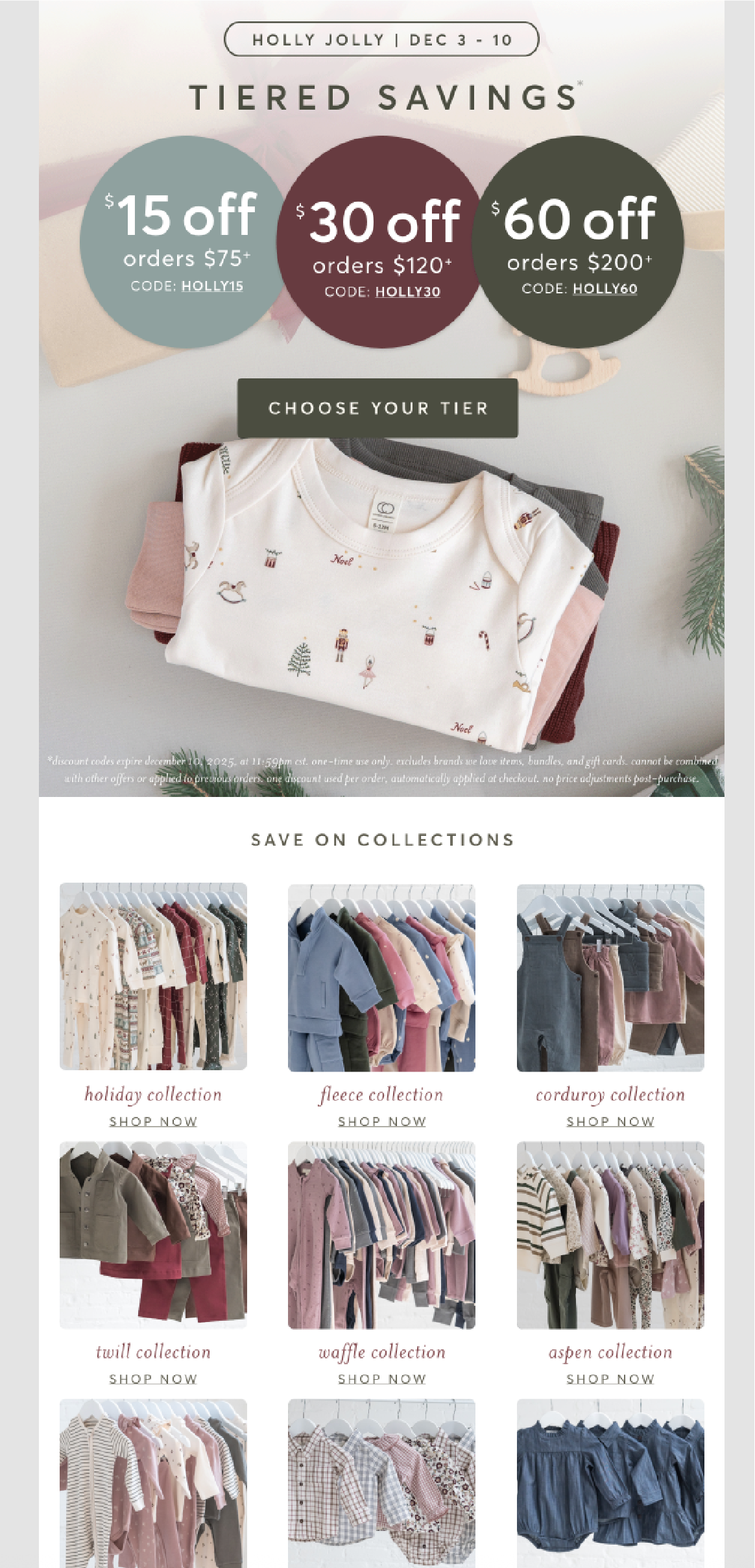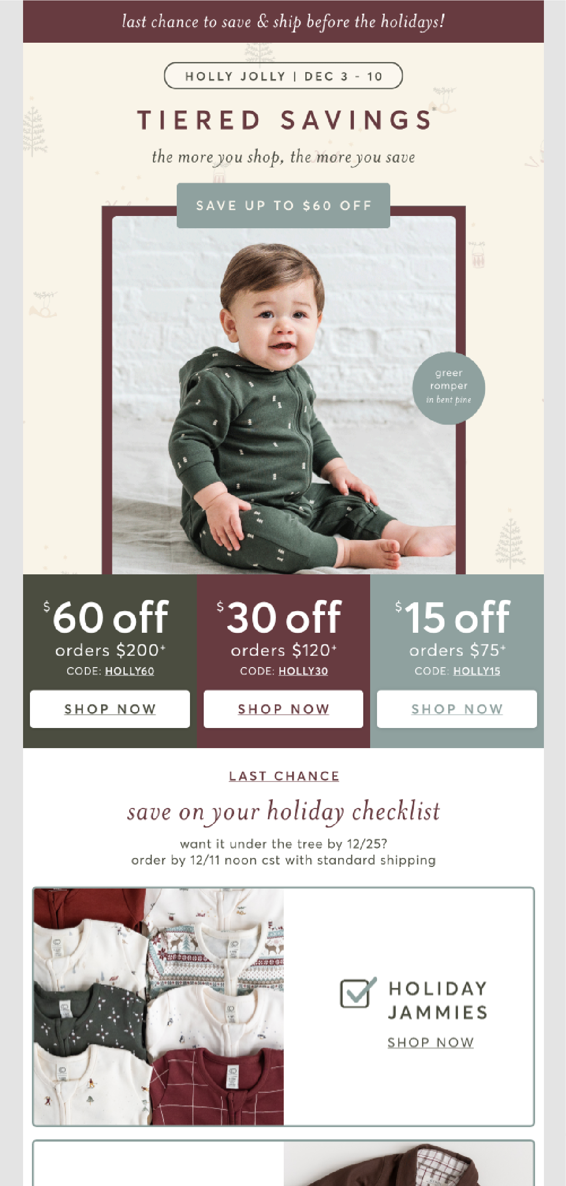 Holly Jolly Promotion for an organic baby & toddler clothing company serving retail customers.
